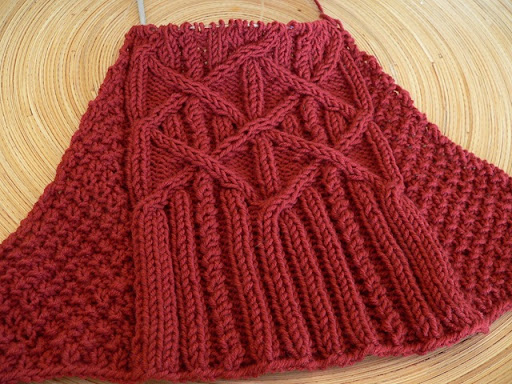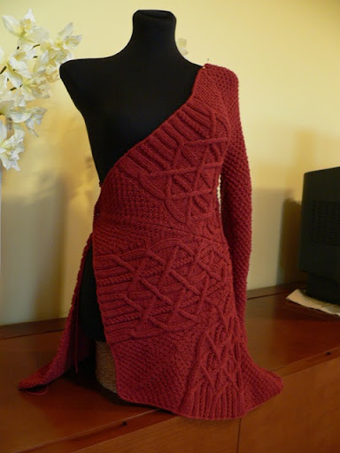 Pierwsza ważna wskazówka - w Vogue Knitting był błąd w schemacie wzoru uimeszczonego na plecach. Prawidłowy schemat umieszczono tutaj.